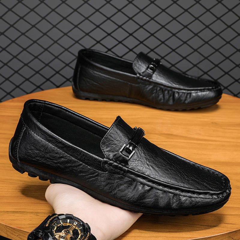 รองเท้าหนังผู้ชายสไตล์อังกฤษสำหรับฤดูร้อน แฟชั่นอเนกประสงค์ ใส่ทำงานได้ สีดำ กันลื่น น้ำหนักเบา