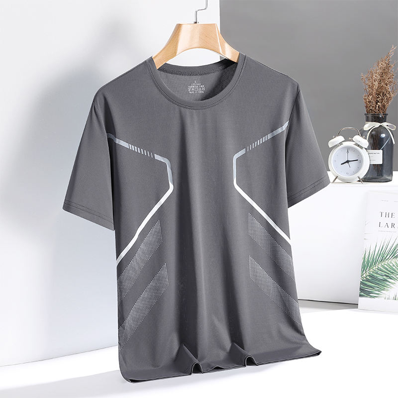เสื้อทีเชิ้ตแขนสั้นผ้าไหมน้ำแข็งเย็นแบบลำลองแขนสั้นสำหรับฤดูร้อนเสื้อยืดโจ๊กเกอร์แบบแห้งเร็วของผู้ชายเสื้อครึ่งแขนแฟชั่นขายดี