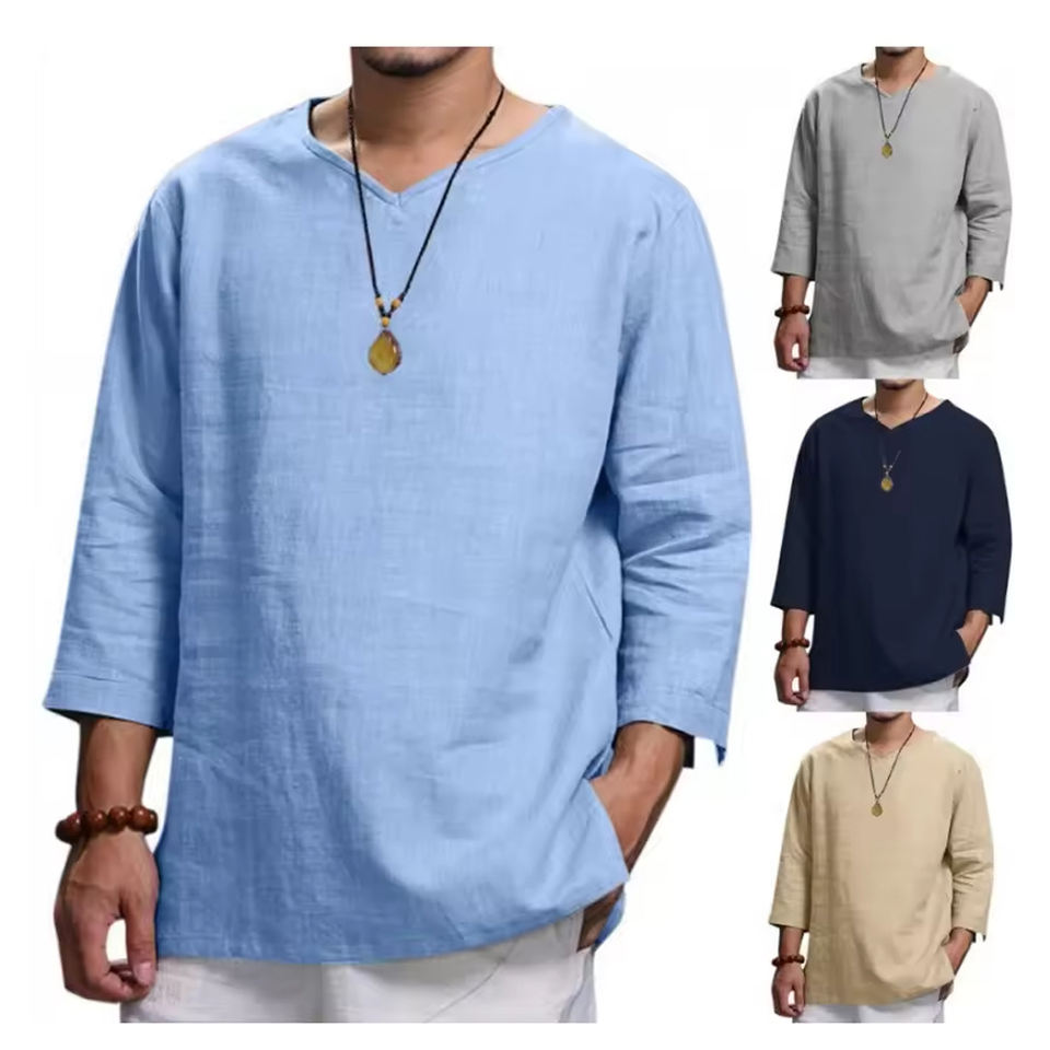 เสื้อทีเชิ้ตเข้ารูปผ้าแจ็คการ์ดสำหรับผู้ชายเสื้อยืดคอวีพิมพ์ลายสำหรับผู้ชาย