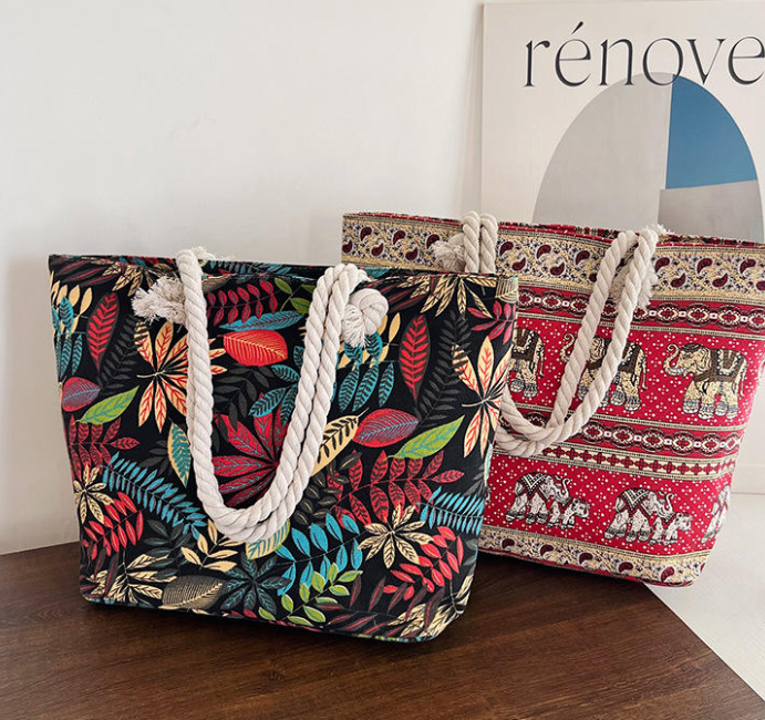 กระเป๋าชายหาดผู้หญิงสำหรับฤดูร้อน ขายส่ง กระเป๋าผ้าแคนวาสสำหรับผู้หญิง เป็นมิตรกับสิ่งแวดล้อม กระเป๋าถือ