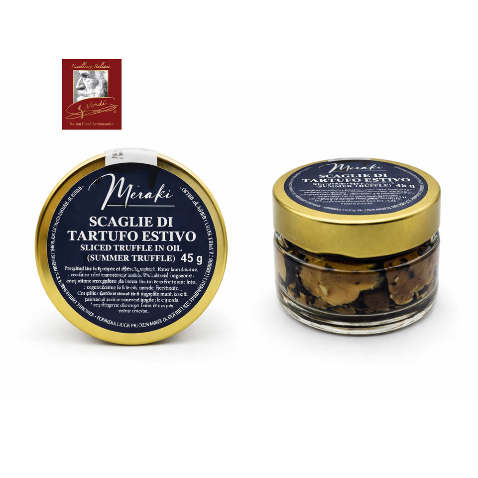 ซัมเมอร์ทรัฟเฟิลเฟลกส์ ทรัฟเฟิลหั่นชิ้นในน้ำมัน บรรจุขวดแก้ว 25 กรัม สำหรับธุรกิจโฮเรก้าและบริการอาหาร GVERDI ผลิตภัณฑ์อาหารอิตาเลียน ผลิตในอิตาลี