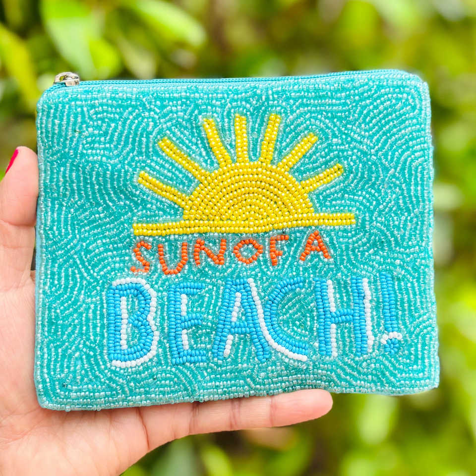 กระเป๋าใส่ของประดับลูกปัดลายชายหาดซันบีช | กระเป๋าคลัทช์ปักลายเทอร์ควอยซ์ทำมือสำหรับฤดูร้อนสำหรับผู้หญิงและเด็กผู้หญิง | กระเป๋าซิปบูติกฮอลิเดย์ความจุขนาดใหญ่