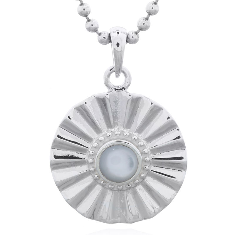 โคมไฟระย้าสีเงิน925รูปดอกทานตะวันเครื่องประดับเปลือกหอยมุกธรรมชาติสไตล์ทางศาสนาพร้อมจี้และเครื่องราง