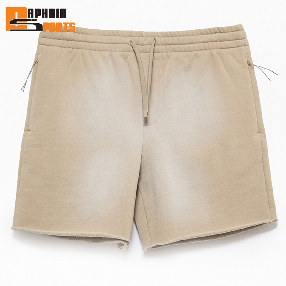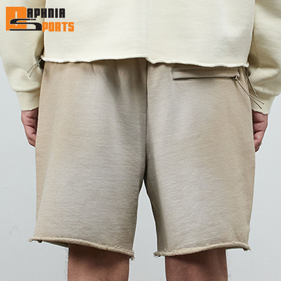 กางเกงขาสั้นผู้ชายสไตล์วินเทจผ้าฝ้ายเฟรนช์เทอร์รี่เนื้อนุ่มซับเหงื่อ ซันเฟด สวีท ชอร์ต รูดเชือกผูกเอว ทรงจ็อกเกอร์ สปอร์ตวอช ผลิตในปากีสถาน