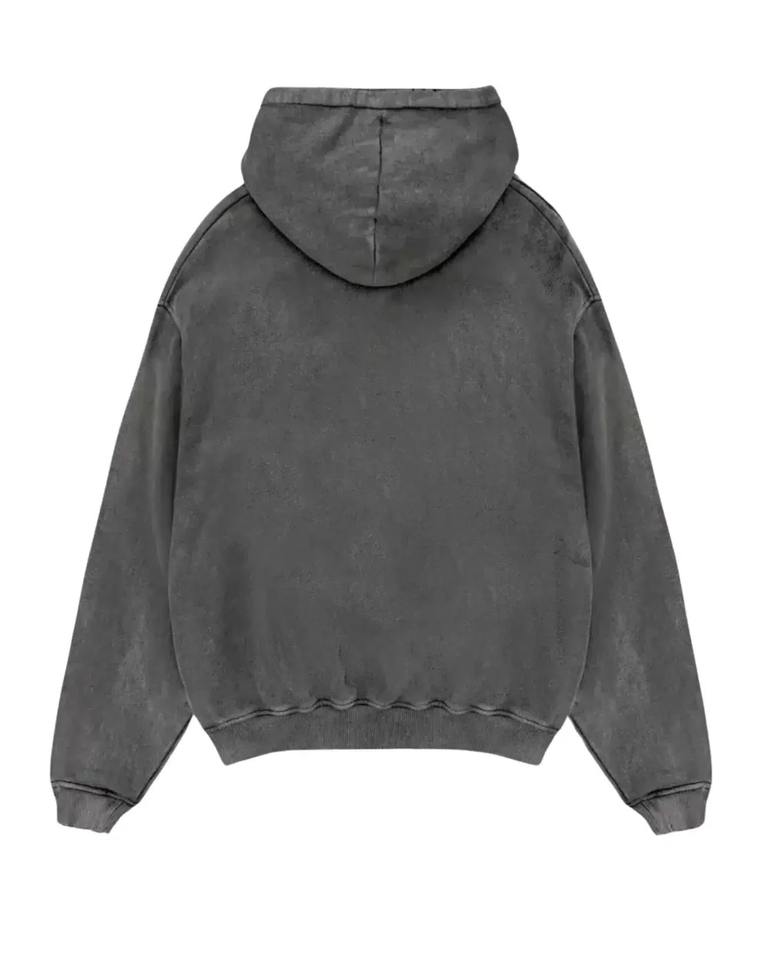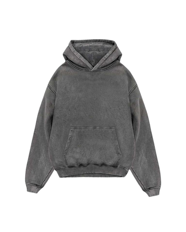 เสื้อฮู้ดดี้สีดำฟอกย้อมสไตล์วินเทจ ผ้าคอตตอนหนา ทรงโอเวอร์ไซส์ สตรีทแวร์ มีกระเป๋าจิงโจ้