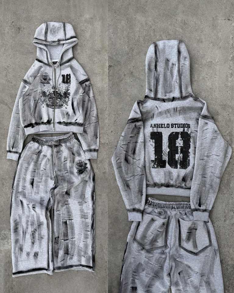 ชุดกีฬาสไตล์วินเทจมีซิปสำหรับผู้ชายชุดวอร์ม450มีฮู้ดสำหรับผู้ชายกางเกงวอร์มผ้าเกล็ดปลาแบบสั้น