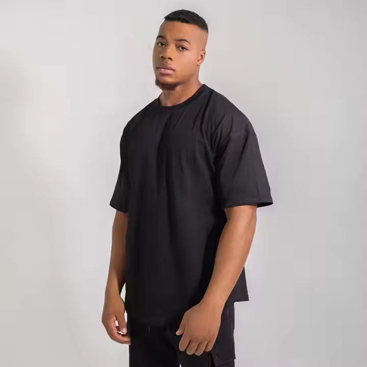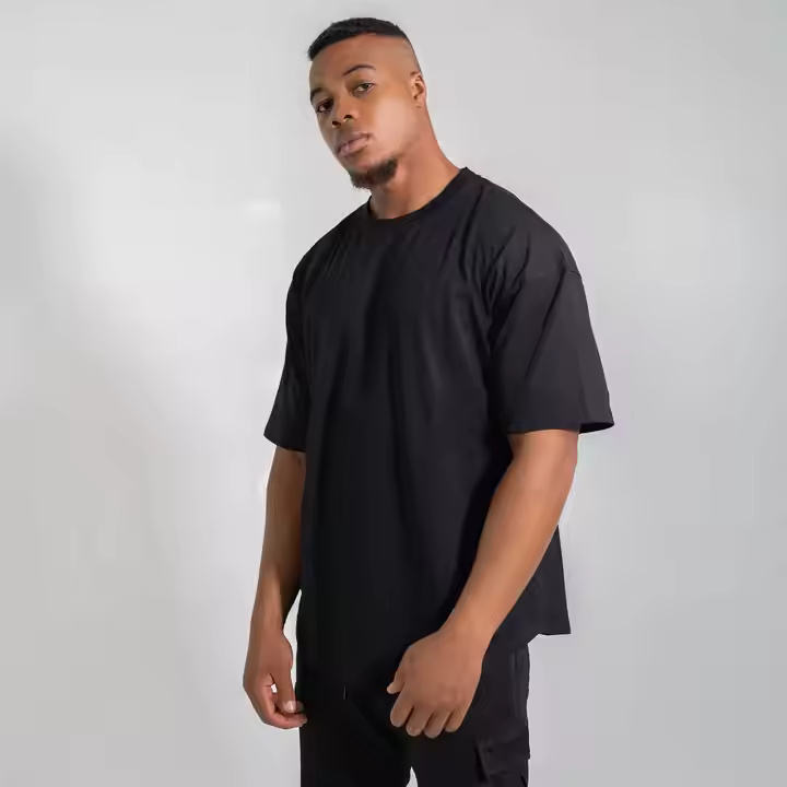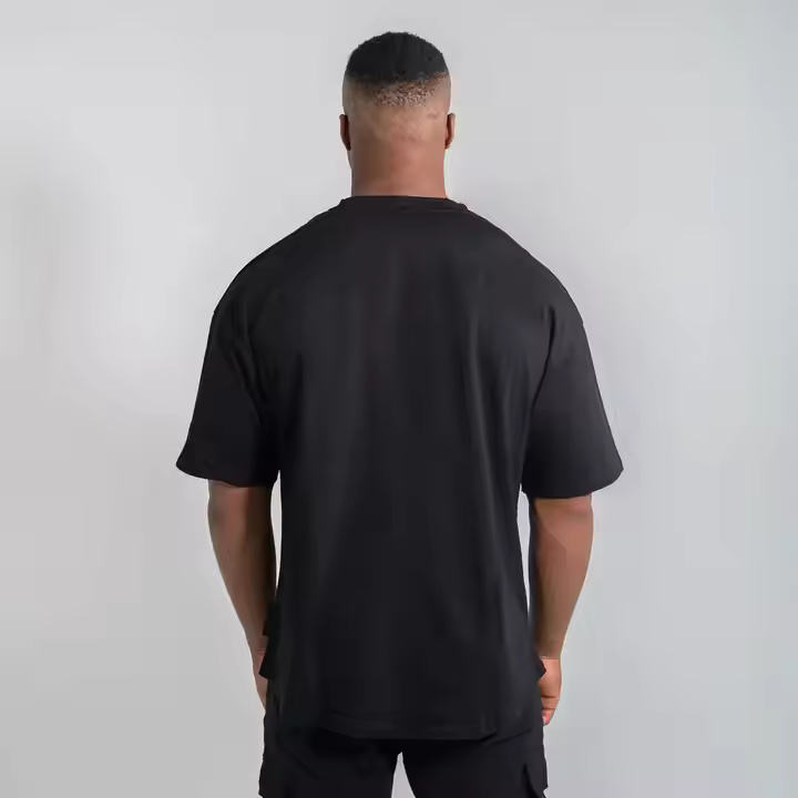 เสื้อยืดผ้าแคนวาสสีพื้นฟอกย้อมสไตล์วินเทจสำหรับผู้ชาย พิมพ์ลายกราฟิกตามสั่ง ทรงหลวมไหล่ตก ทรงปกติ