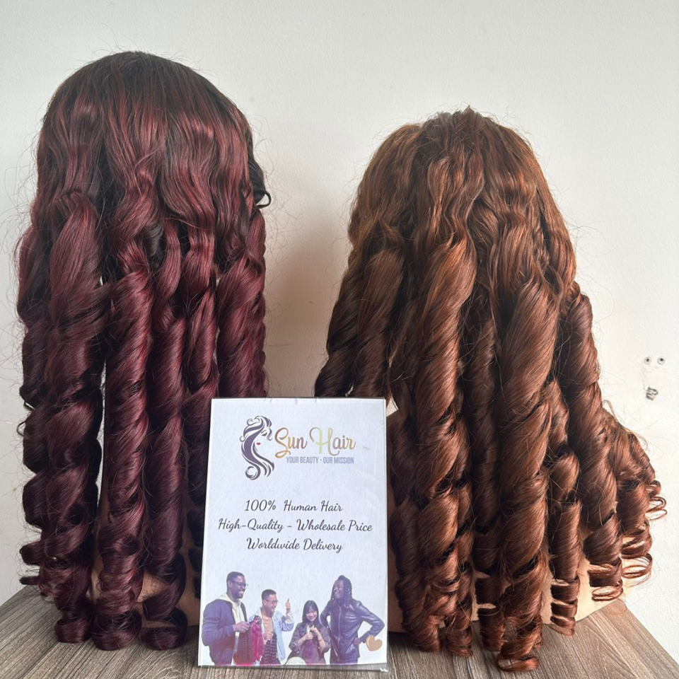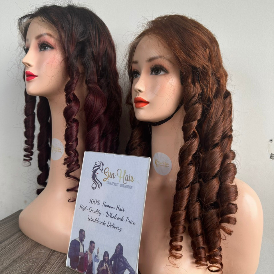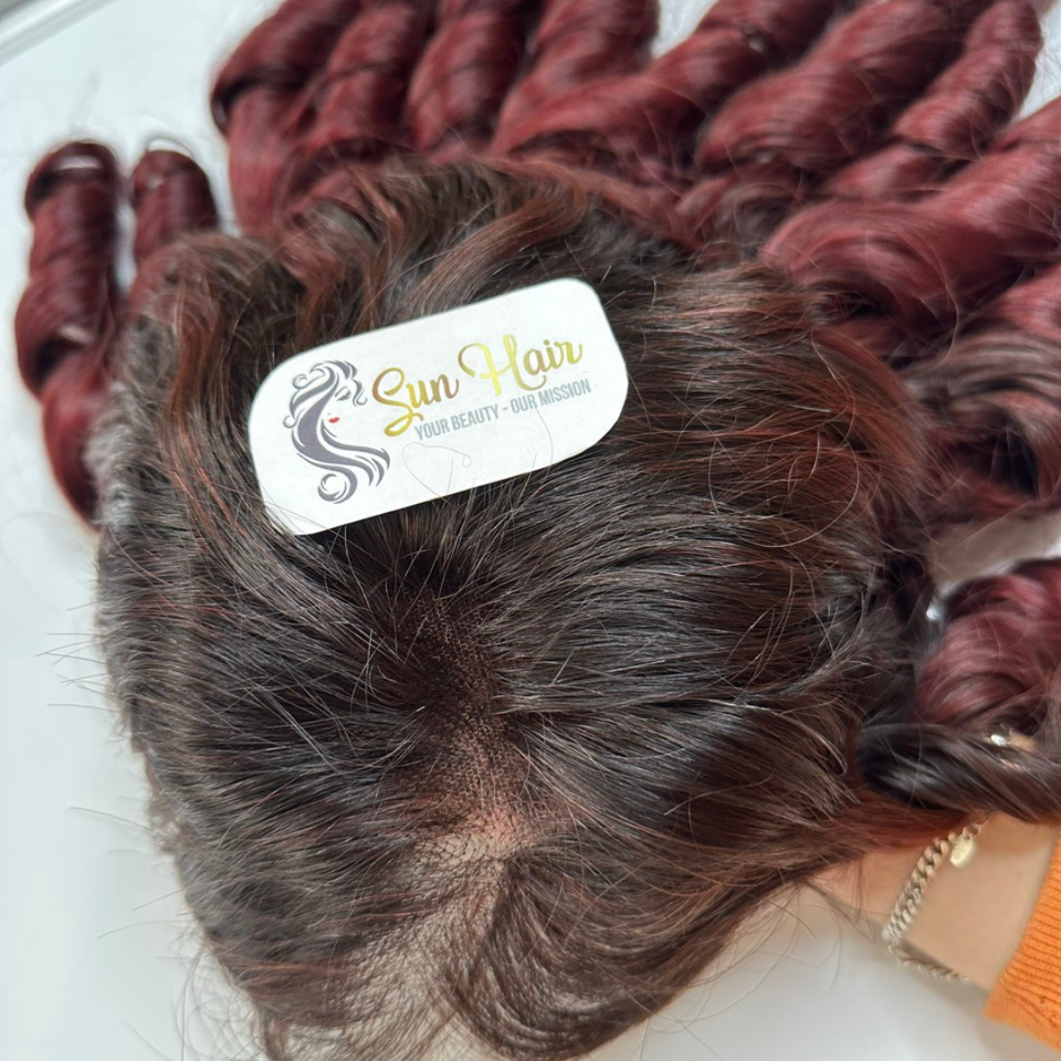 บริษัทซันแฮร์ ผลิตภัณฑ์ต่อผมแท้เวียดนามแบบเรมี่สั่งทำพิเศษ เกรดพรีเมียม แบบเย็บสองชั้น ทรงลอนเด้ง สีน้ำตาลเบอร์กันดี