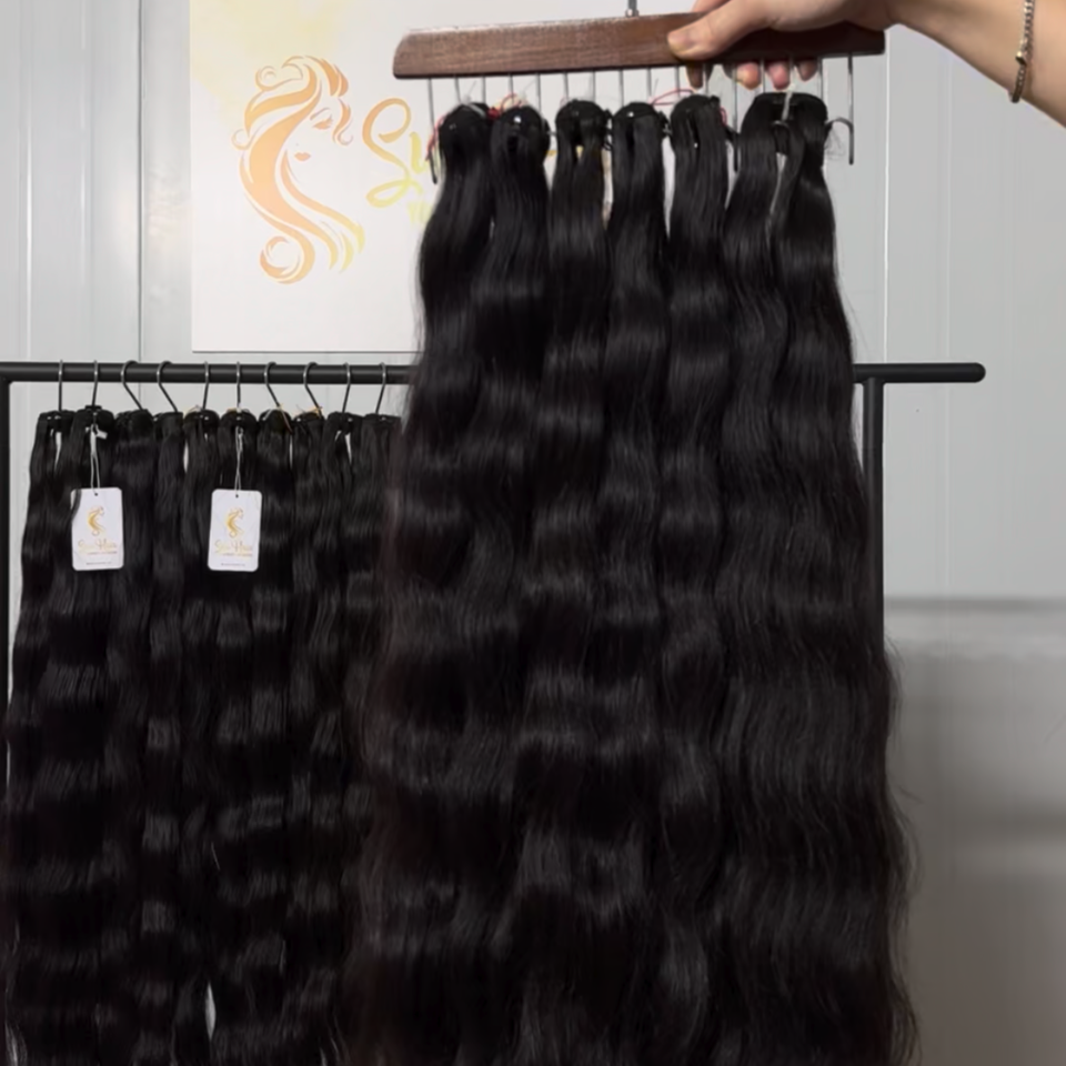 วิกผมมนุษย์แบบไม่ใช้กาวผมสีดำธรรมชาติแบบคู่