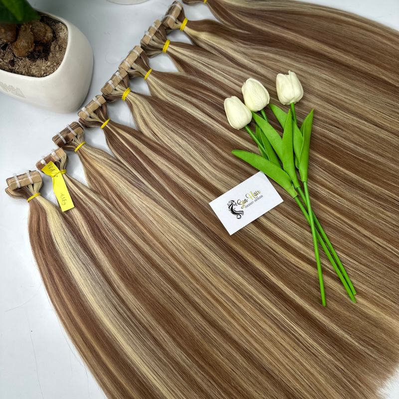 บริษัทซันแฮร์ บริการต่อผมแบบเทป ไฮไลท์แบบละเอียดอ่อน ผมแท้เวียดนาม เกรดเรมี่ จัดเรียงเกล็ดผม ต่อผมแบบดับเบิ้ลเมชชีน