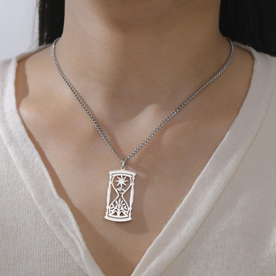 สร้อยคอนาฬิกาทรายดวงอาทิตย์สำหรับผู้ชายและผู้หญิงย้อนยุคโทเท็มกลวงยันต์พร้อมสายโซ่เชื่อมโยงของขวัญเครื่องประดับคู่รัก