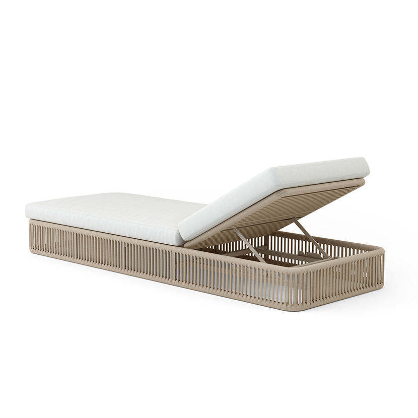 เก้าอี้อาบแดดคุณภาพสูง ให้ความสบาย ผลิตจากโครงอะลูมิเนียมพร้อมเชือกถัก มาพร้อมเบาะกันแดดสำหรับใช้งานกลางแจ้ง