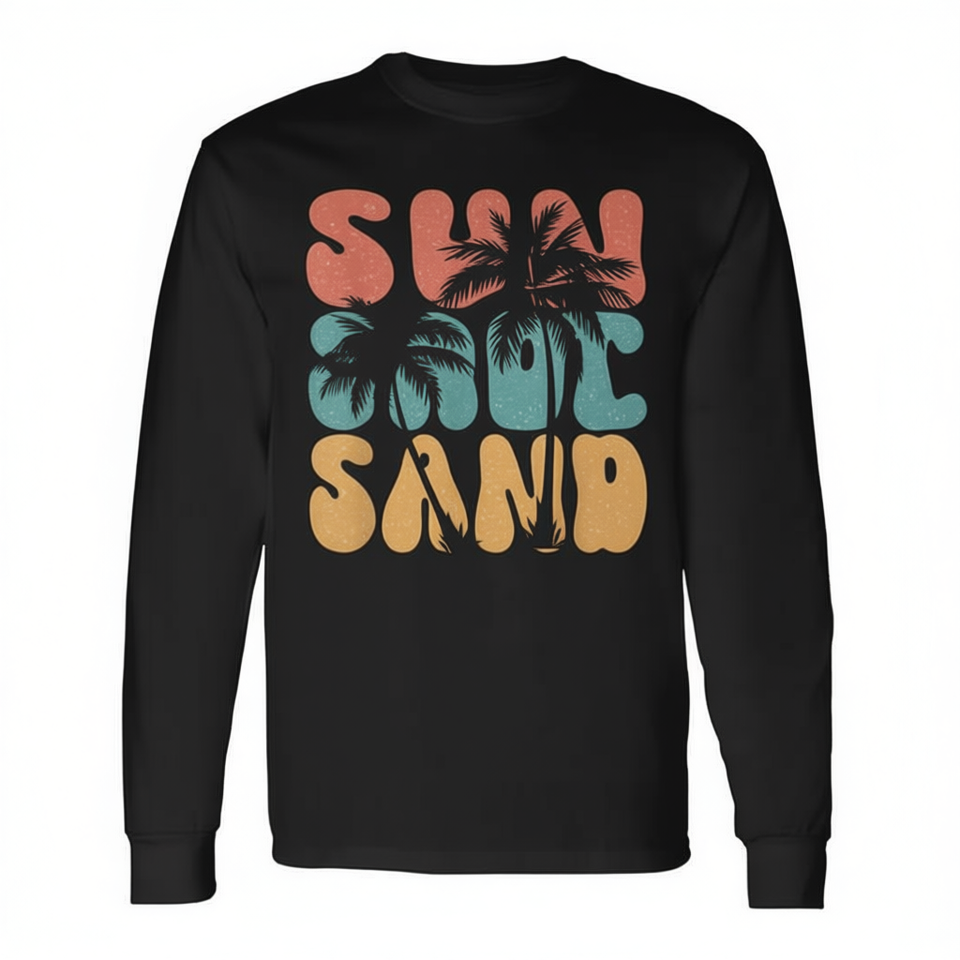 เสื้อยืดแขนยาวลายซันซอลท์แซนด์ซัมเมอร์วากาซีชั่นสำหรับผู้ใหญ่ คอกลม ใส่ได้ทั้งชายและหญิง เหมาะสำหรับงานโปรโมชั่น
