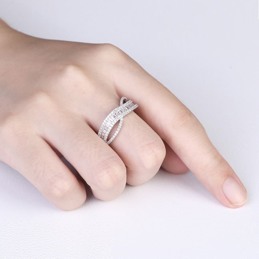 แหวนเพชรแท้ทรงบาแก็ตต์ 18k ทองคำขาว ชุบโรเดียม ประดับเพชร SI1 ของแท้จากซันสตาร์ เครื่องประดับสำหรับผู้หญิงในโอกาสครบรอบ CMA