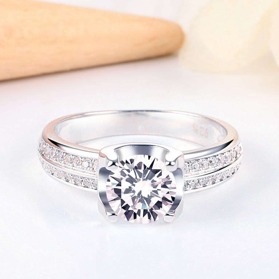 แหวนเงินแท้ 925 ชุบทอง ประดับเพชรซิคอน ดีไซน์ใหม่จากซันสตาร์ สำหรับผู้หญิง เหมาะสำหรับงานหมั้น งานแต่งงาน งานครบรอบ และงานเลี้ยง