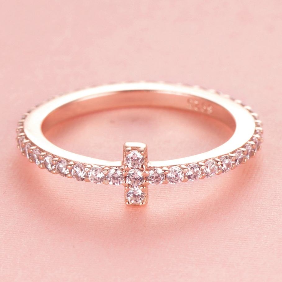 Sun Star TL-360 Women's Rose Gold & Rhodium Plated Zircon Classic Cross Engagement Ring Band CMA Certified Wholesale