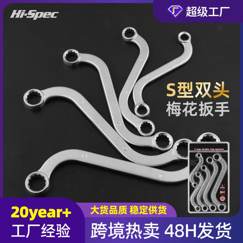 ชุดประแจแหวนคู่แบบ S ยี่ห้อซันทูลส์ 5 ชิ้น ขนาดเมตริก ผลิตจากเหล็ก Cr-V ขนาด 10x11 12x13 14x15 16x17 18x19