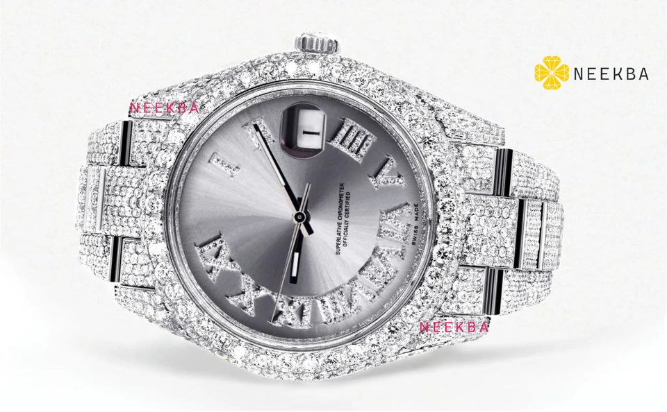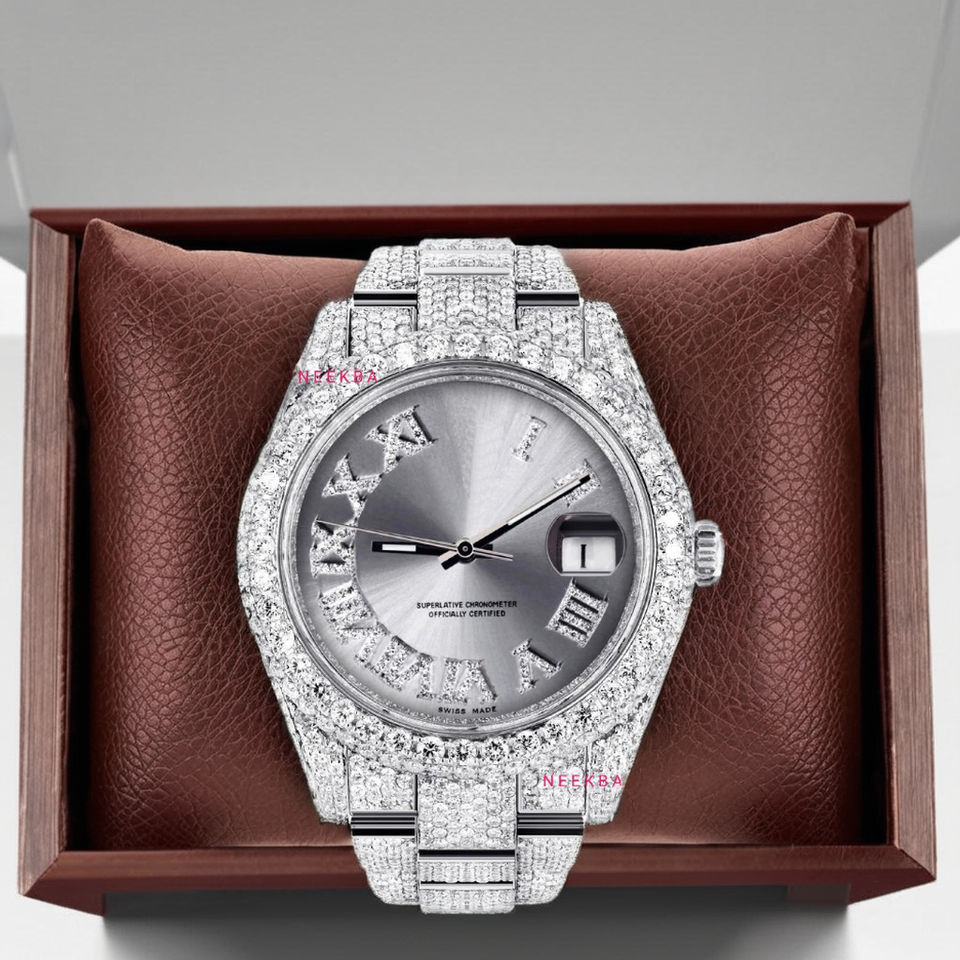 Sunburst dial นาฬิกาอะนาล็อกเพชร-เลขโรมัน, VVS Moissanite นาฬิกาอัตโนมัติอินเดียจากผู้ขาย