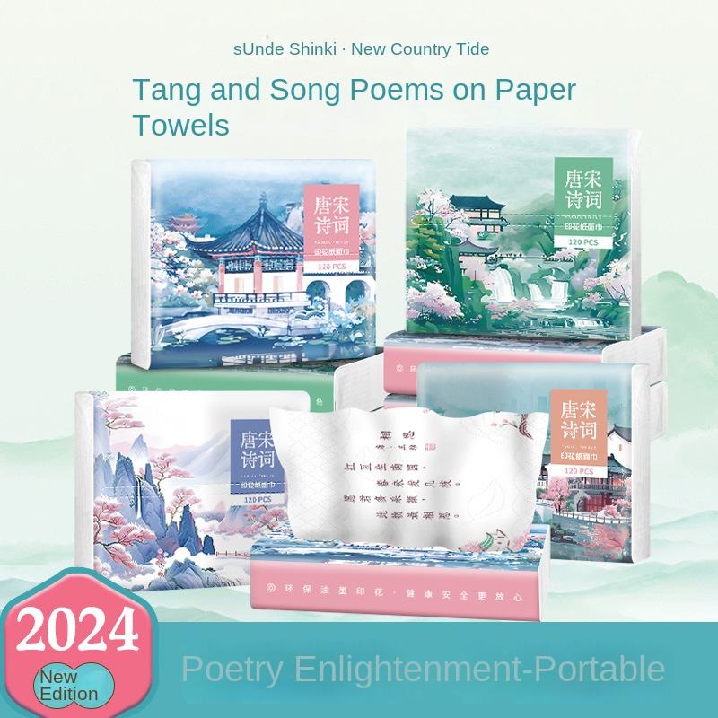 กระดาษทิชชูซันเดอถัง ลายบทกวี ลายภาพวาด ลายชาติพันธุ์ แบบพกพา หนา 4 ชั้น ผลิตจากเยื่อไม้บริสุทธิ์