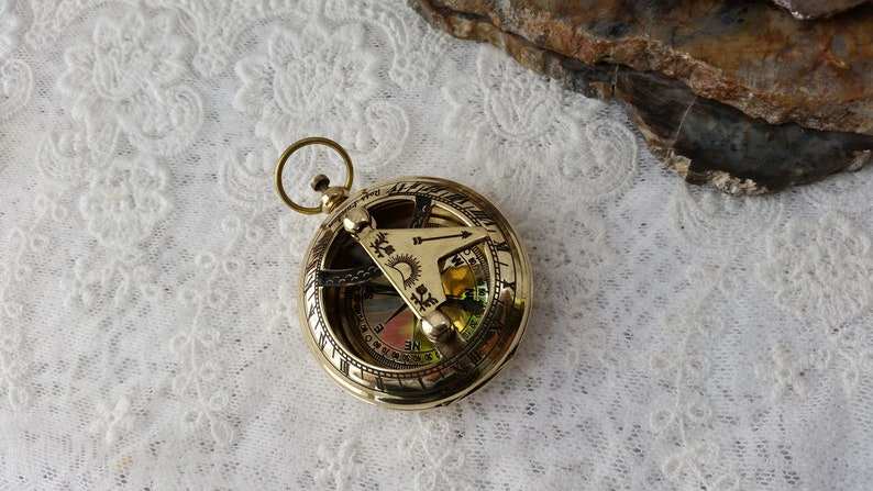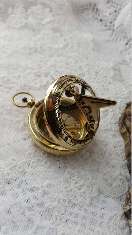 นาฬิกาแดดเข็มทิศทองเหลืองนาฬิกาแดดงานโบราณ