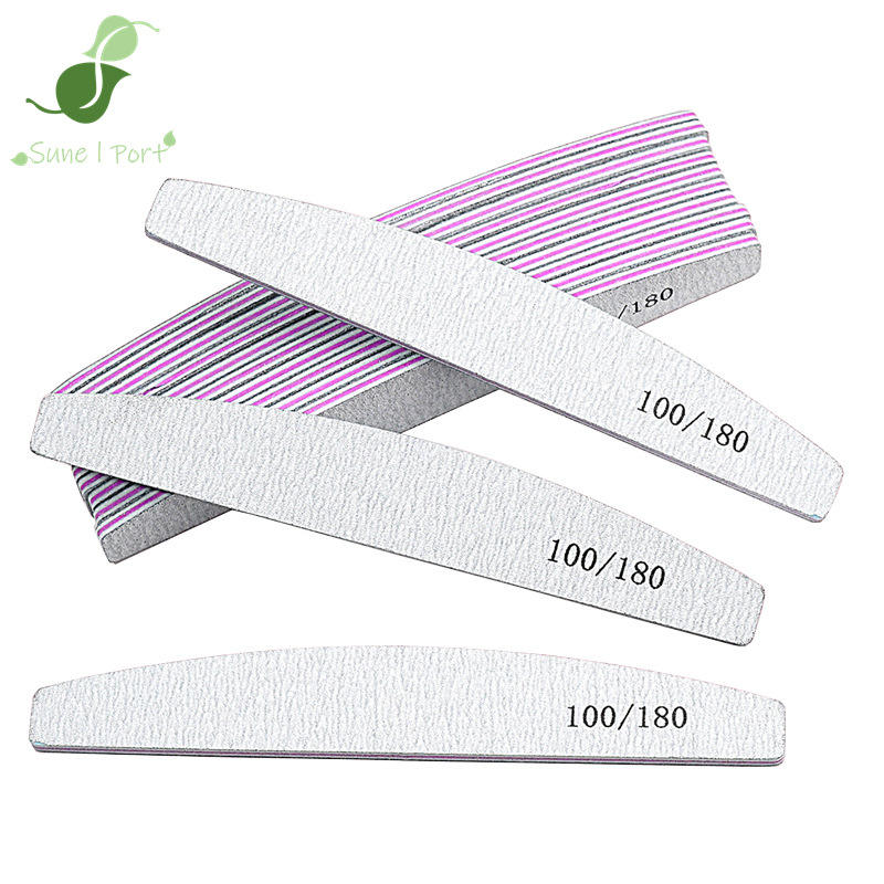 ตะไบเล็บ SunelPort แบบครึ่งวงกลม สีเทา สำหรับขัดเล็บ ความละเอียด 100/180 แบบสองด้าน ตรง
