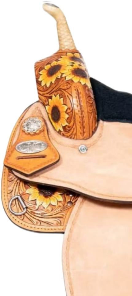 กระเป๋าขี่ม้าหนังแท้ลายดอกทานตะวันอานม้าตะวันตกทนทานแข่งม้าภาษาอังกฤษผลิตภัณฑ์จากอินเดีย