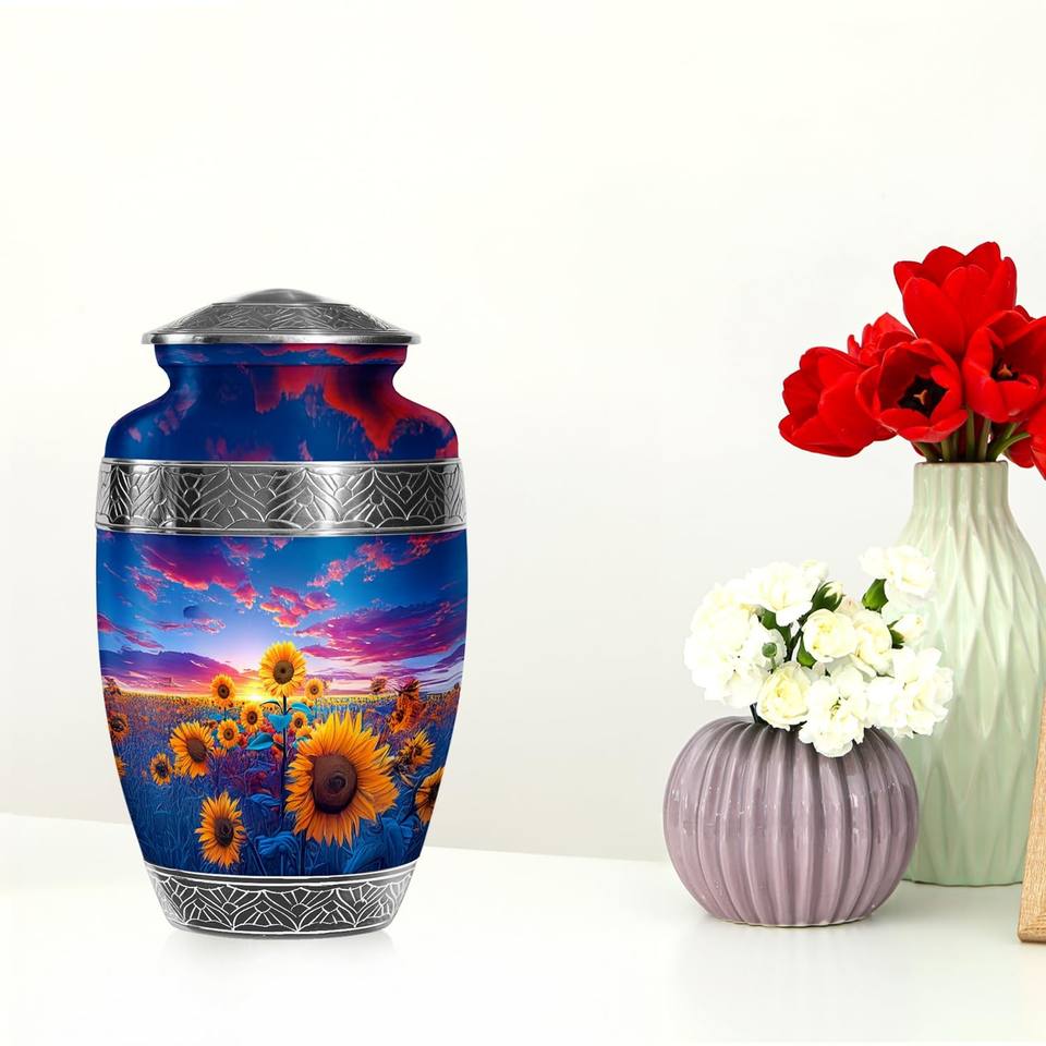 โกศบรรจุอัฐิรูปดอกทานตะวันขนาดใหญ่ สไตล์ยุโรป/อเมริกา สำหรับผู้ใหญ่ ขนาด 10 นิ้ว (220 คิวบิกอินช์) สำหรับใส่เถ้ากระดูกมนุษย์ เป็นมิตรกับสิ่งแวดล้อม ปรับแต่งได้
