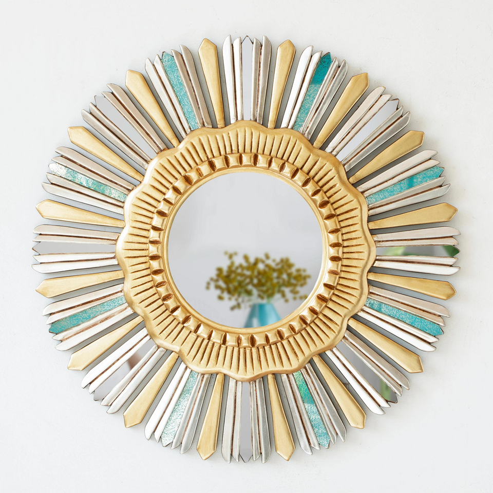 Sunflower Metal Frame Decorative Round Metal Wall Mirror Unique Design Modern Shape Wall Mirror Wholesale