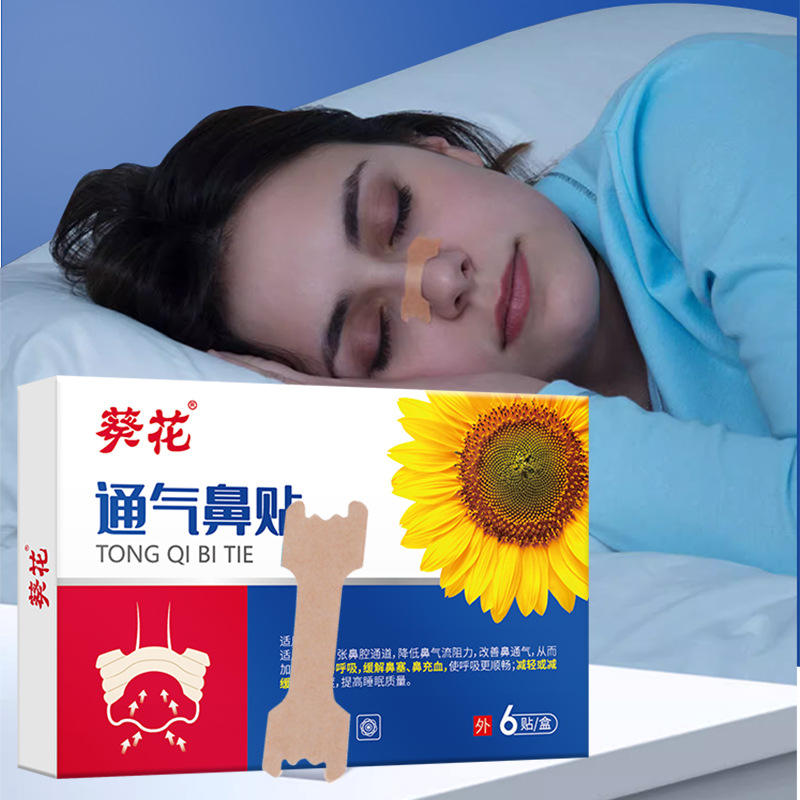 แผ่นแปะจมูกซันฟลาวเวอร์ 6 ชิ้นต่อกล่อง บรรเทาอาการคัดจมูก ช่วยให้หายใจได้ดีขึ้นเพื่อการนอนหลับที่ดีขึ้น
