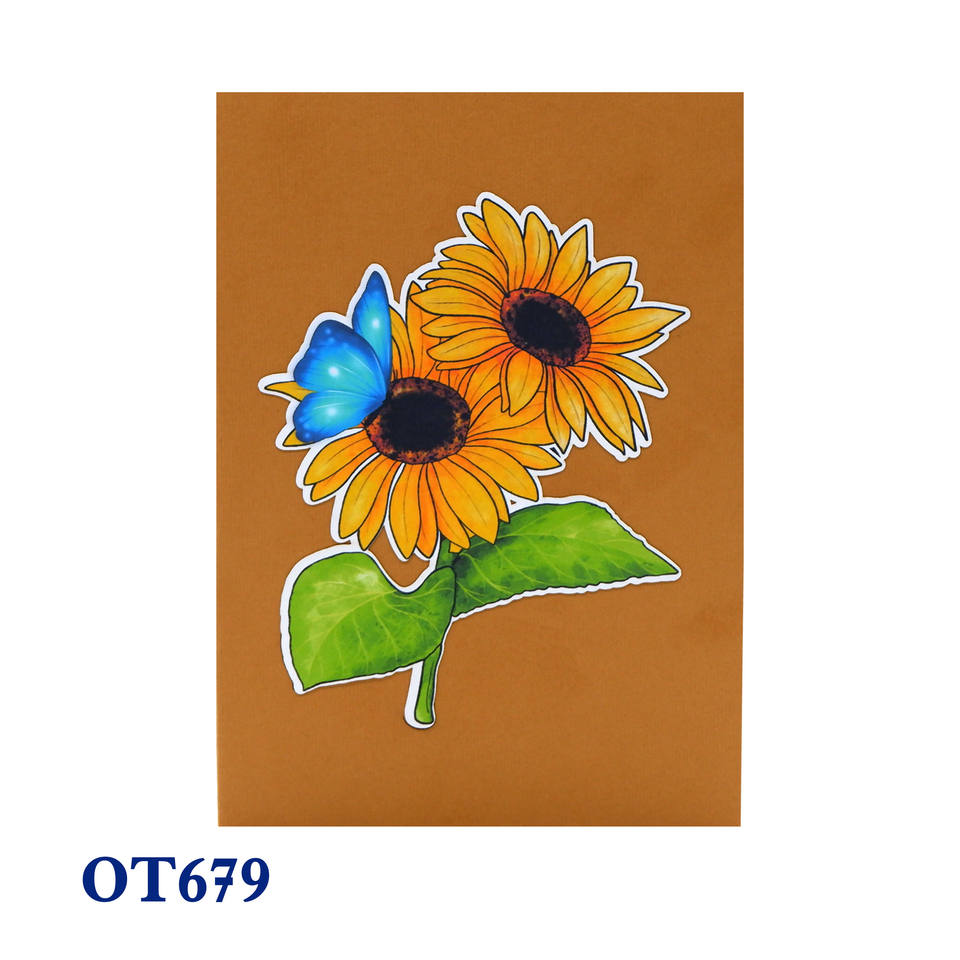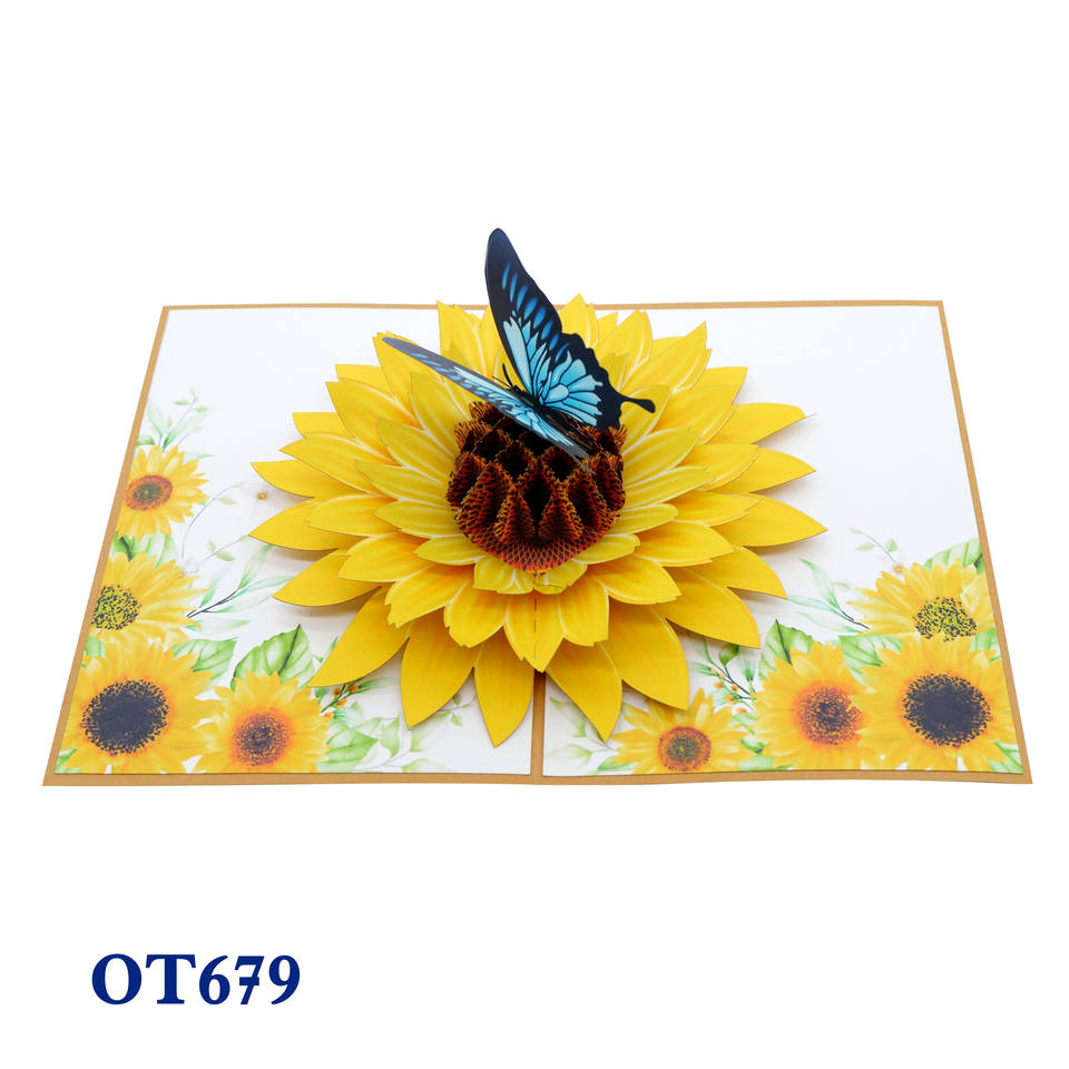 การ์ดป๊อปอัพ3D ดอกทานตะวันงานหัตถกรรมกระดาษทำมือสไตล์ยอดนิยมของขวัญและงานฝีมือจากเวียดนามออกแบบได้ตามต้องการด้วยเลเซอร์