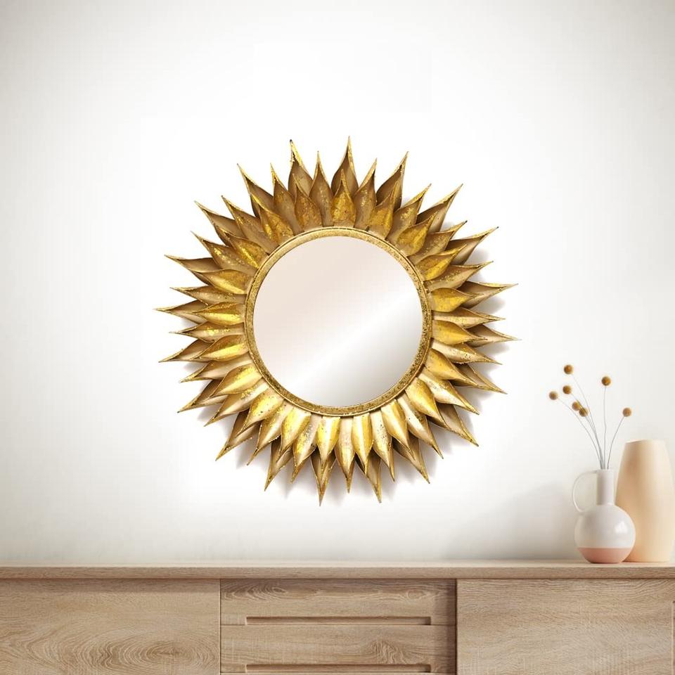 ดอกทานตะวันรูปโลหะครอบคลุมกระจกที่มีคุณภาพดีผงทองเคลือบหรูหราผนังกระจกขายส่งอุปกรณ์กระจกสะท้อน