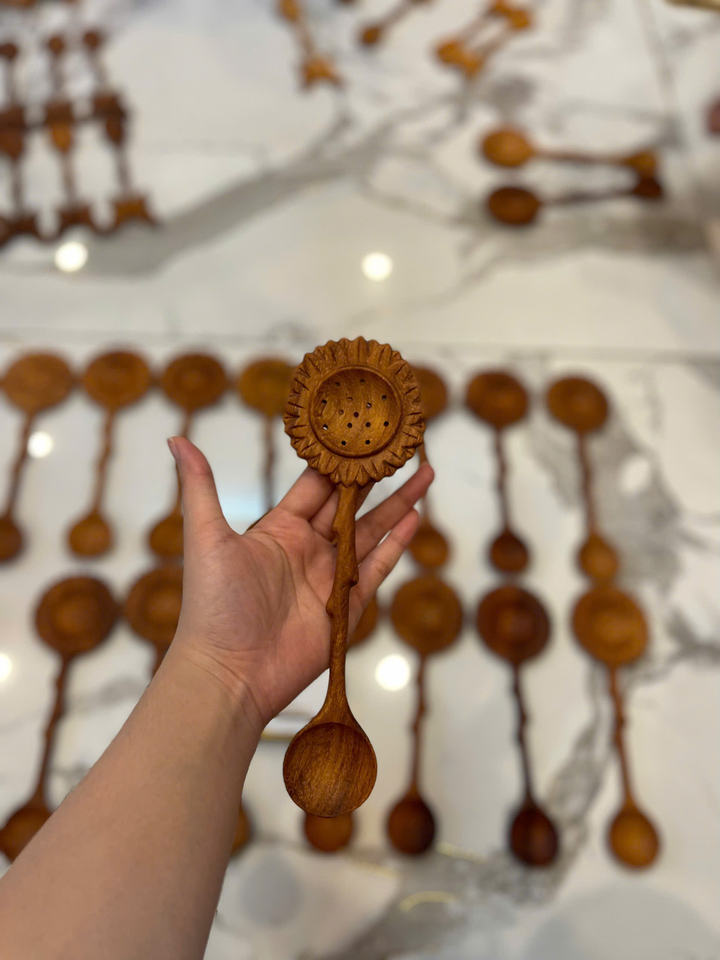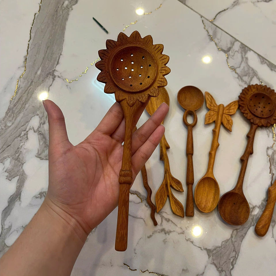 ช้อนตักแบบมีร่อง หัวสแตนเลสทรงกลม ด้ามไม้ อุปกรณ์ครัวสำหรับทอดและเสิร์ฟ ขายส่งเวียดนาม