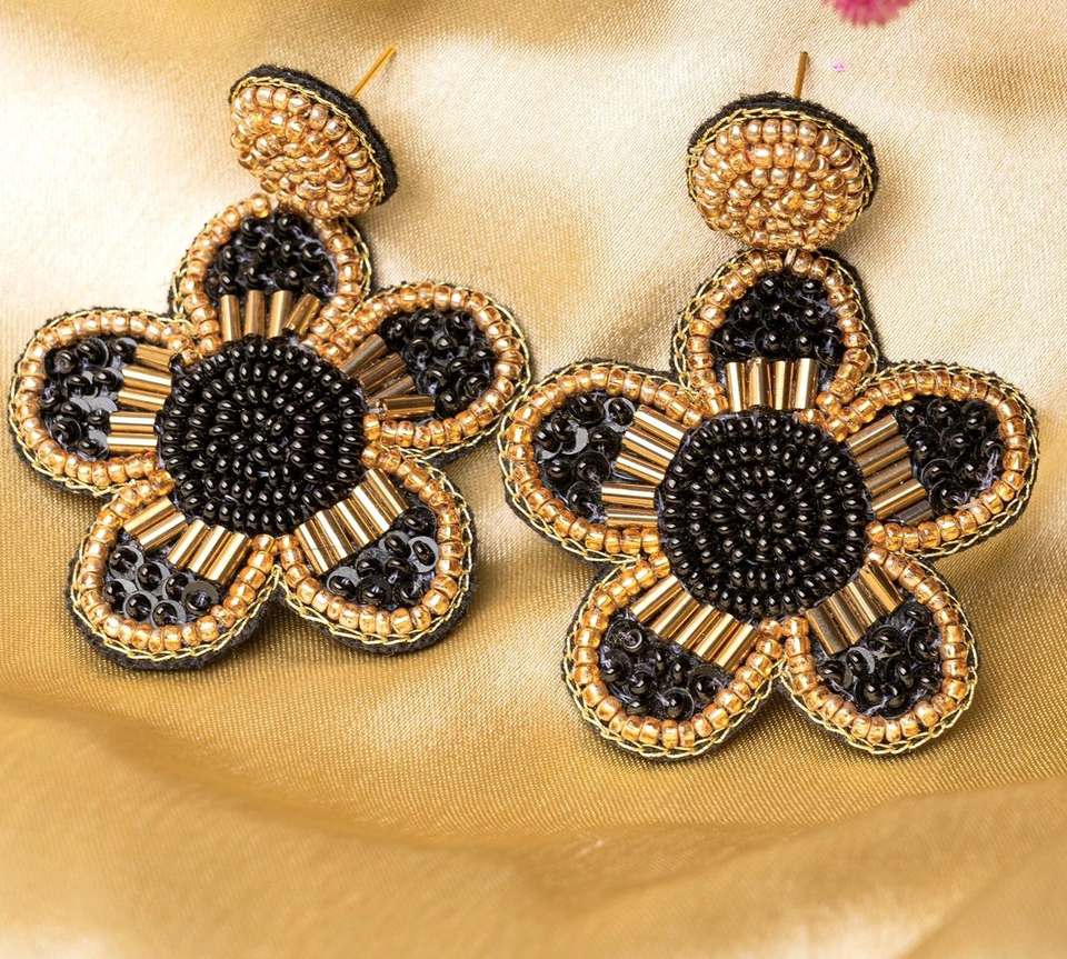 ต่างหูปักลายดอกทานตะวัน ต่างหูประดับลูกปัดหลายเม็ด ต่างหูสำหรับผู้หญิงสำหรับงานเทศกาล งานปาร์ตี้ ราคาดีที่สุด ต่างหูลูกปัด