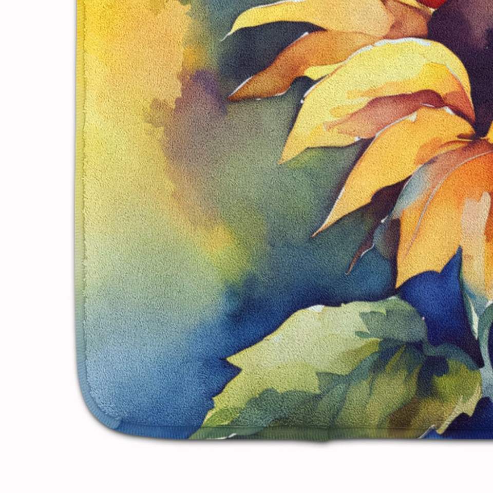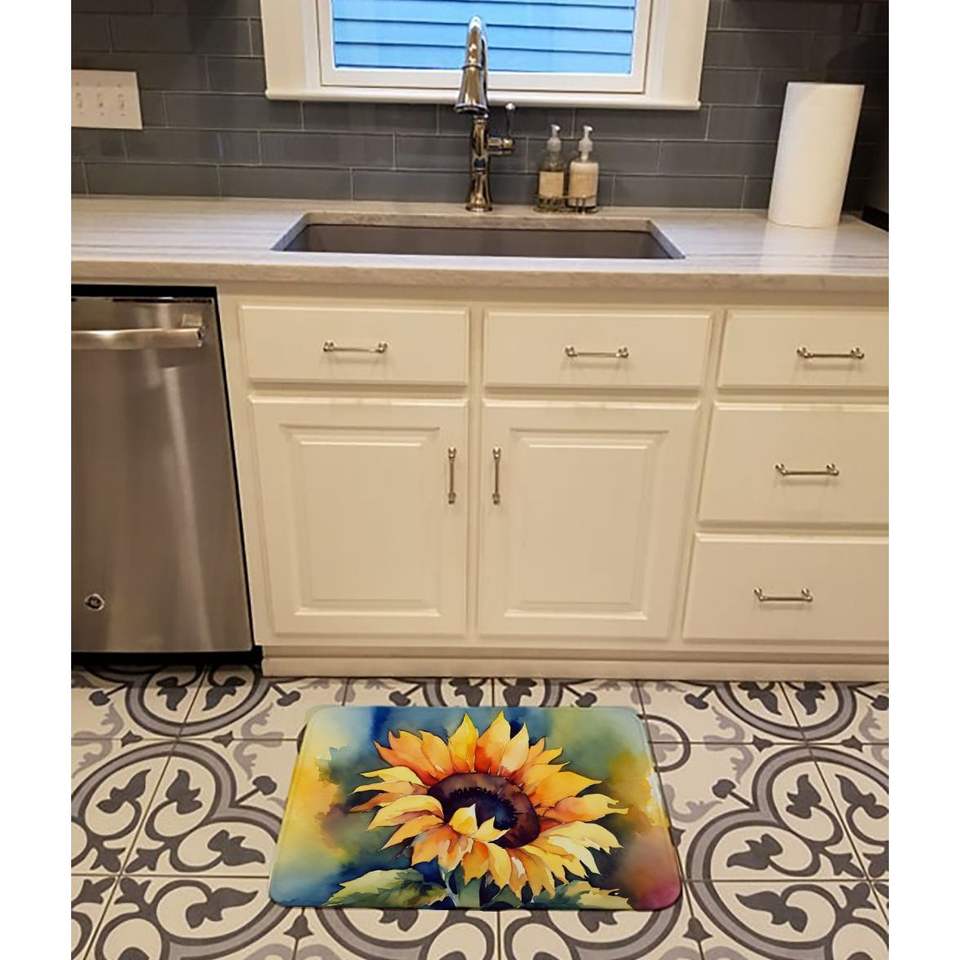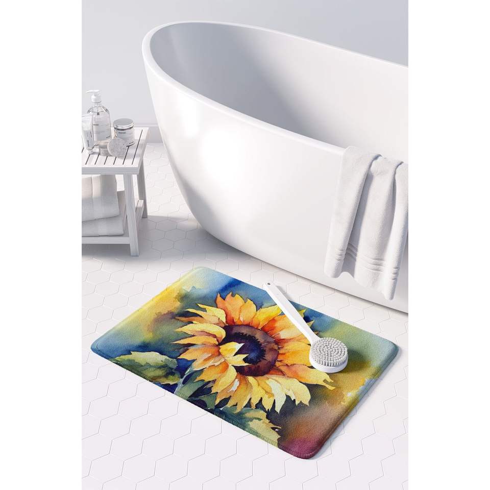 เสื่อโฟมเมมโมรีโฟมลายดอกทานตะวันสำหรับใช้ในครัวพรมในห้องน้ำแบบซักได้ป้องกันความเมื่อยล้าแผ่นและแผ่นรองเพื่อความสบาย