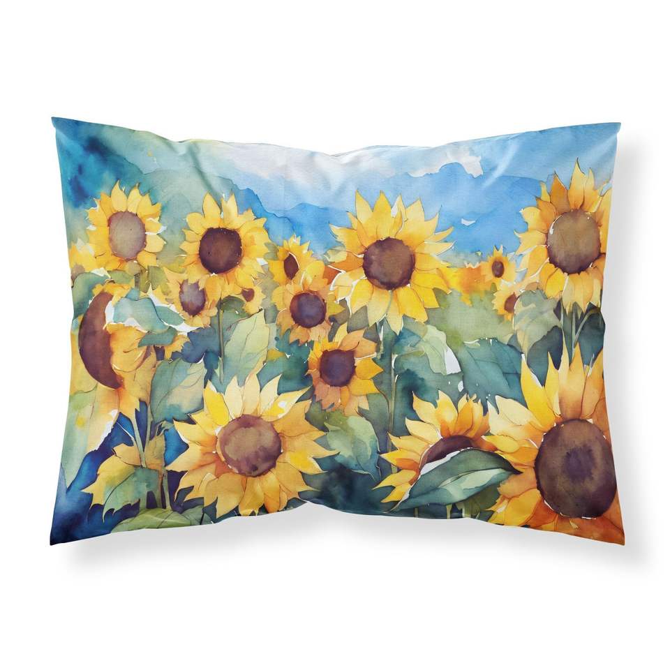 ปลอกหมอนอิงตกแต่งลายดอกทานตะวันในสีน้ำปลอกหมอนอิงขนาดมาตรฐานน้ำหนักเบาและนุ่มมาก