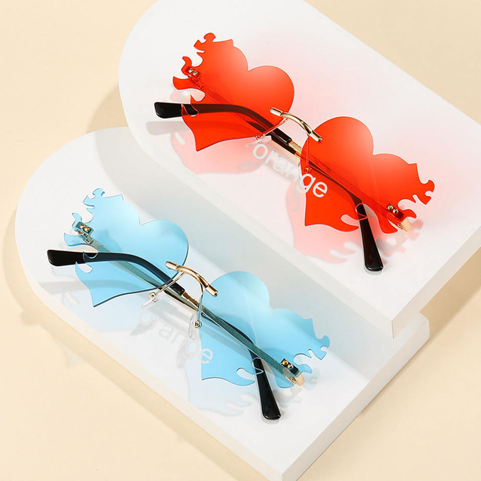 แว่นกันแดดทรงไร้กรอบสำหรับผู้หญิงผู้ชาย แว่นกันแดดโลหะทันสมัยสำหรับงานปาร์ตี้สีสันสดใส
