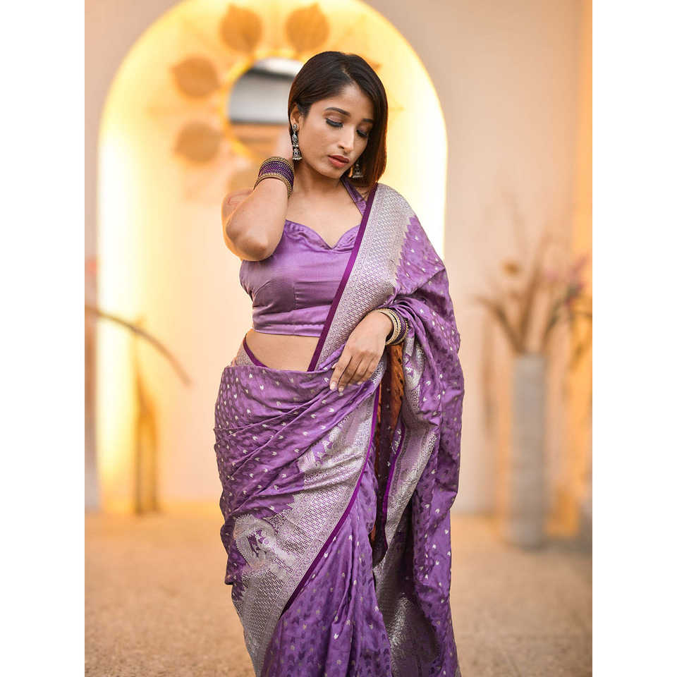 ผ้าไหมซาตินบาเนราสีทอแบบซารีของซูนิตา เสื้อผ้าอินเดียและปากีสถาน น้ำหนัก 700 กรัม ผ้าทอคุณภาพสูง