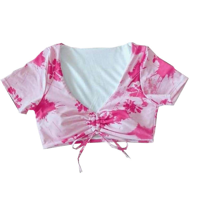 Sunkissed ชุดบิกินี่เปิดไหล่ลายปะการังจีบมีสายรัดด้านหน้าปรับได้สำหรับชุดชายหาดแสนสนุกในฤดูร้อน