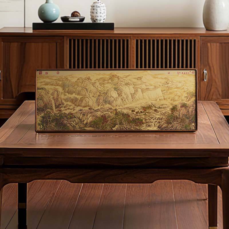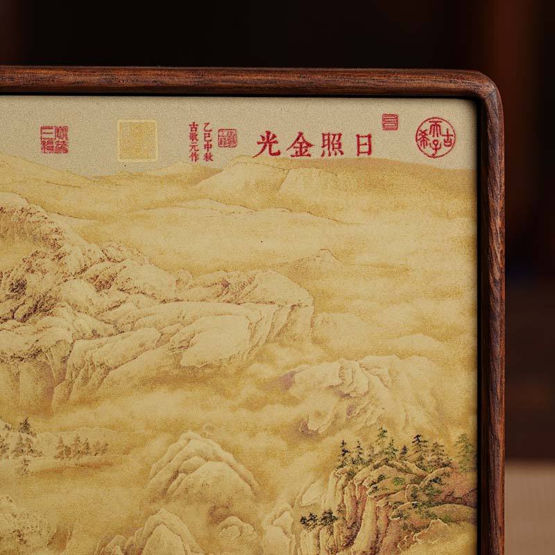 เครื่องประดับภูเขาสีทองแสงอาทิตย์ ของตกแต่งโต๊ะทำงาน งานฝีมือสไตล์จีนใหม่ ของตกแต่งห้องนั่งเล่น ห้องชงชา ห้องทำงาน ของขวัญขึ้นบ้านใหม่