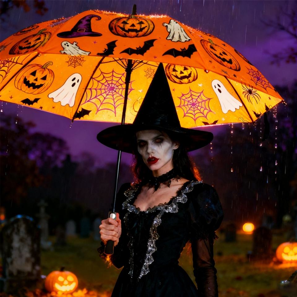 ร่มกอล์ฟกันลม Sunny Kinte SK-G171 ขนาดใหญ่ ลายฮาโลวีน ทรงตรง ปรับแต่งสีได้ เส้นผ่านศูนย์กลางเมื่อเปิด 130 ซม.