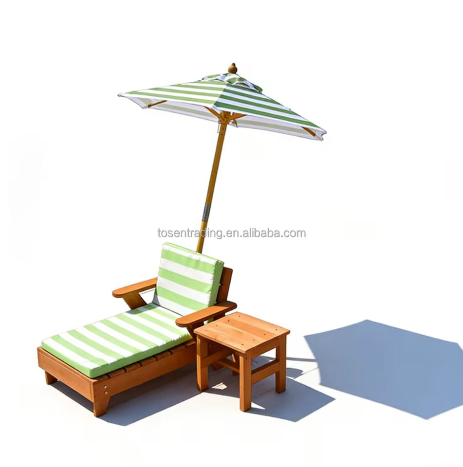 เก้าอี้พักผ่อนกลางแจ้งสำหรับเด็ก Sunny Sprout พร้อมร่มลายทางเข้าชุด เก้าอี้พักผ่อนเดี่ยวสำหรับเด็กพร้อมโต๊ะข้าง