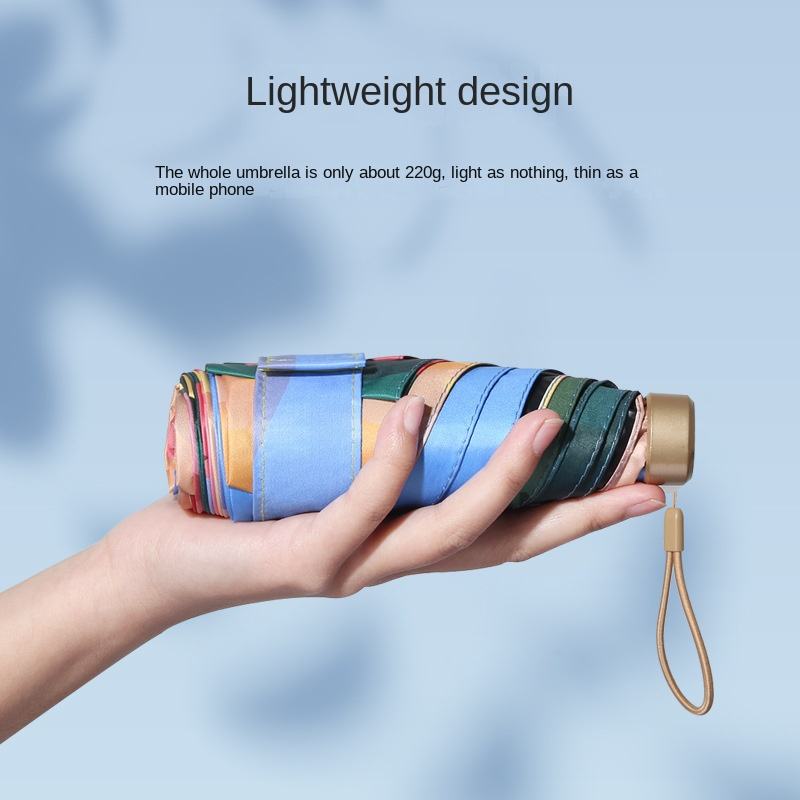 ร่มกันแดดพับได้ 6 ตอน ขนาดเล็ก พกพาสะดวก ป้องกันรังสียูวี UPF50