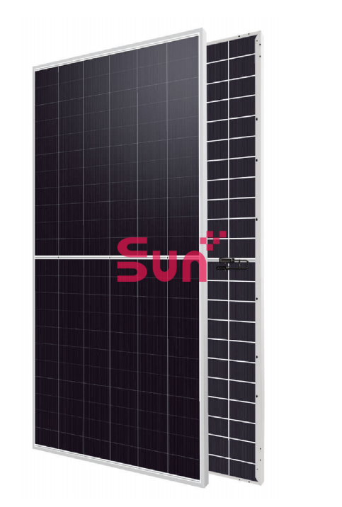 แผงโซลาร์เซลล์ซันพลัสแบบสองหน้าชนิด N โมโนคริสตัลไลน์ซิลิคอน กำลังไฟ 610W 620W 625W ประสิทธิภาพ 23.3% สำหรับโมดูลฟรี