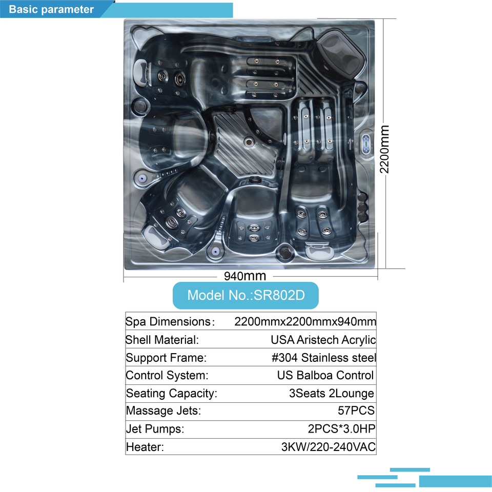 ขนาดอ่างน้ำร้อน:2200x2200x940mm