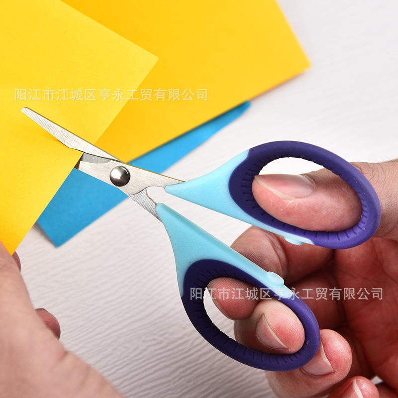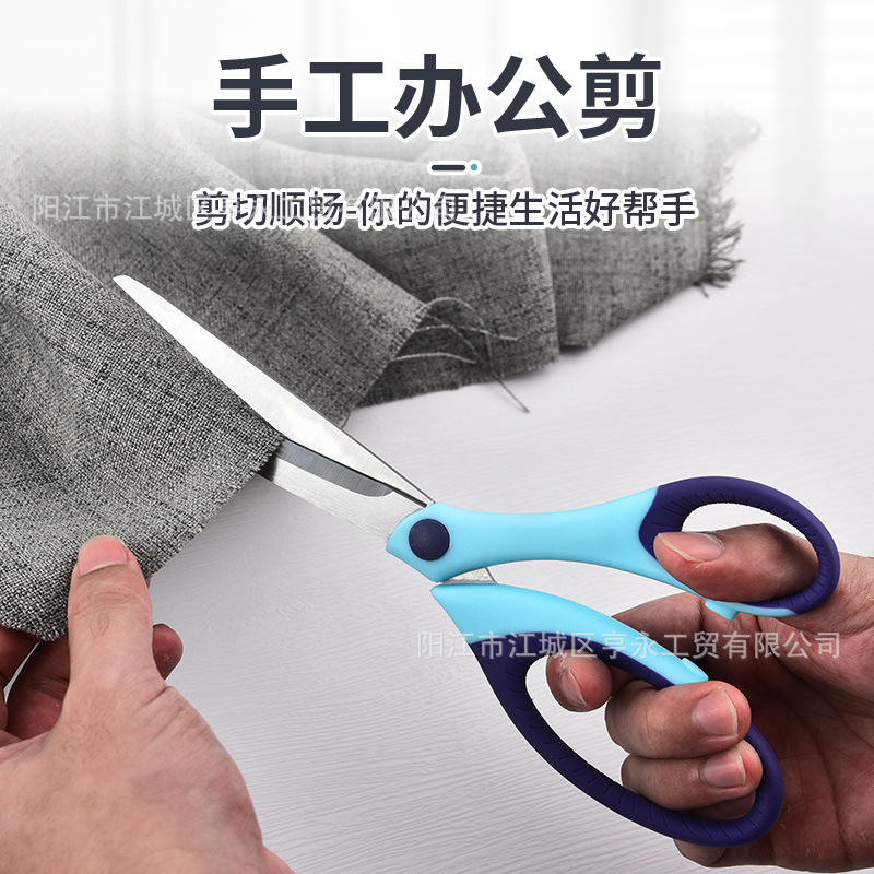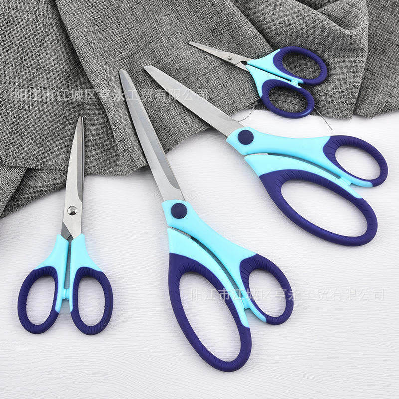 กรรไกรอเนกประสงค์ซันไรส์ชุด 3 ชิ้นสแตนเลสด้ามจับสีฟ้า-ม่วงสำหรับใช้ในครัวเรือนสำนักงานงานฝีมือเย็บผ้าใช้สำหรับนักเรียน