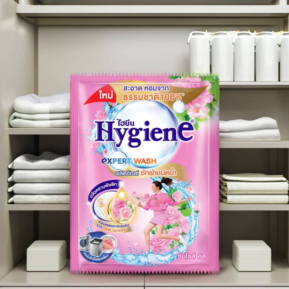 น้ำยาซักผ้าเพื่อสุขอนามัย35มล. สำหรับน้ำยาซักผ้าผ้าทำความสะอาดแบบเหลวสำหรับเสื้อผ้าสิ่งทอน้ำหอมกลิ่นพระอาทิตย์ขึ้นสีชมพู