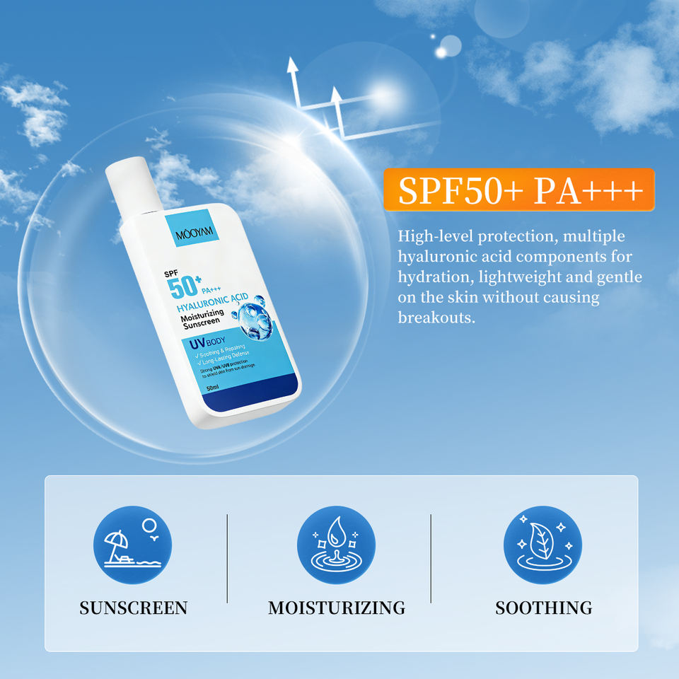 ครีมกันแดด ไฮยาลูโรนิค แอซิด มอยส์เจอร์ไรซิ่ง SPF 50+ ผลิตภัณฑ์ดูแลผิว ป้องกัน UVA/UVB กันแดด ไม่เหนียวเหนอะหนะ ใช้ได้ทุกวัน ป้องกันแสงแดด