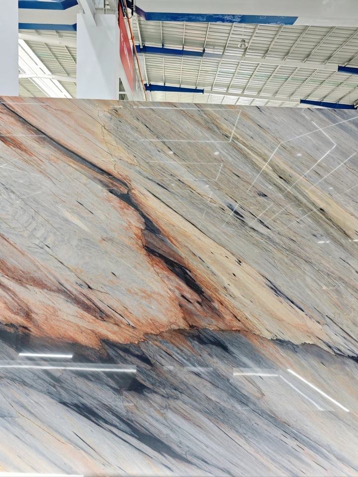 กระเบื้องหินอ่อนธรรมชาติเรืองแสงพระอาทิตย์ตกดินหินที่อบอุ่นสำหรับเชิญโต๊ะเคาน์เตอร์และคุณสมบัติพื้นผนังตกแต่ง