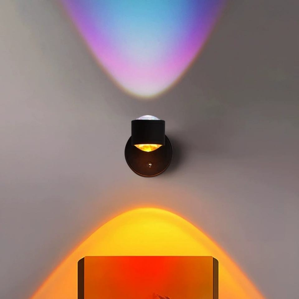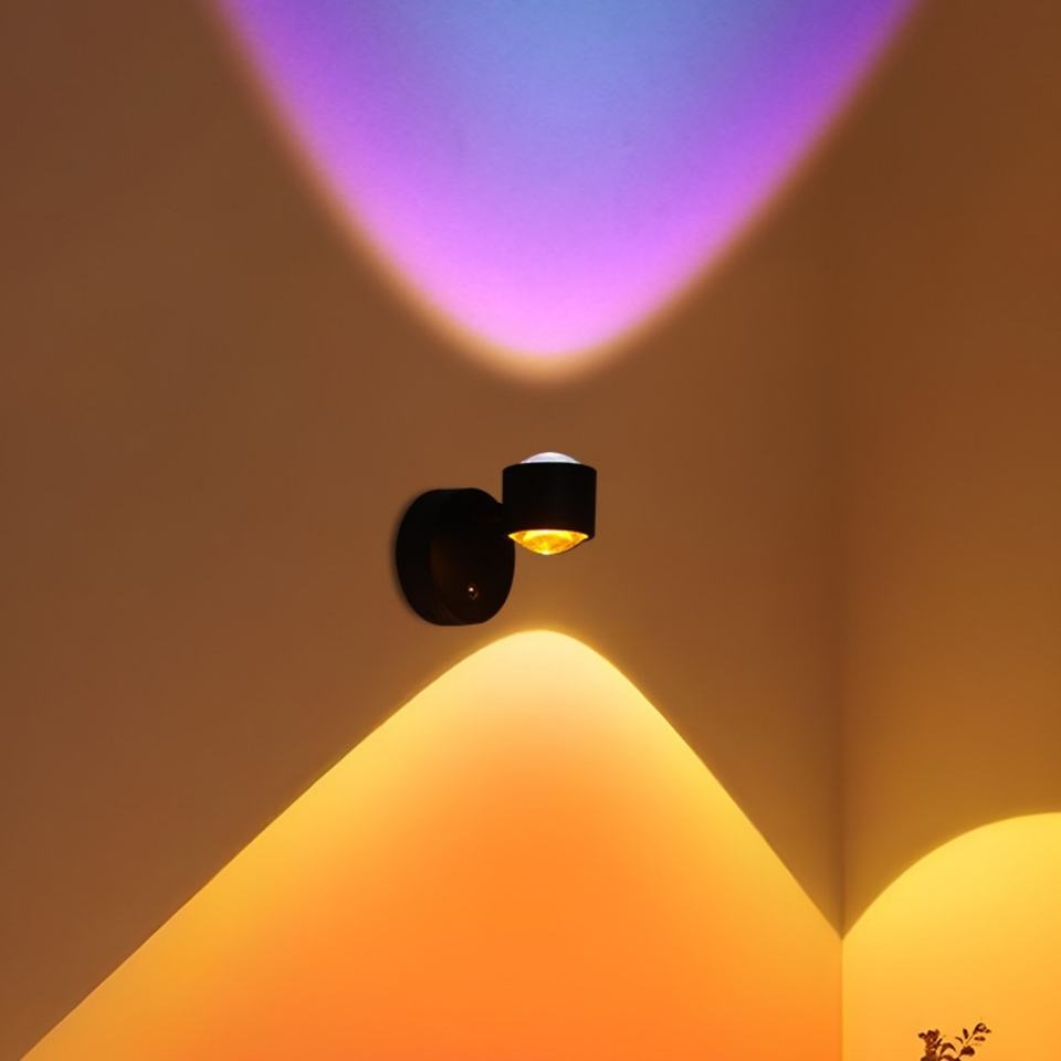 โคมไฟพระอาทิตย์ตก โคมไฟติดผนัง LED สปอตไลท์ไร้สาย อลูมิเนียม สำหรับห้องนอน ห้องนั่งเล่น ตกแต่งผนังพื้นหลัง