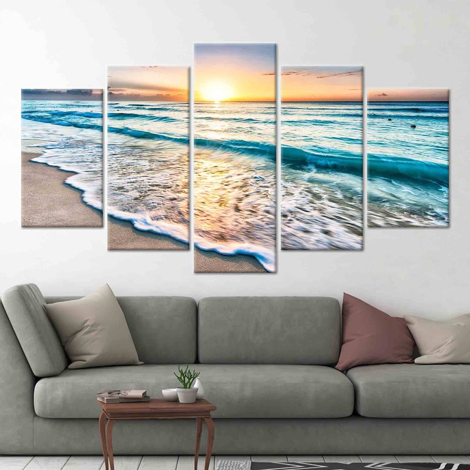 ศิลปะผ้าใบพิมพ์ลายพระอาทิตย์ตกมหาสมุทร-การตกแต่งผนังทิวทัศน์ชายหาดที่สง่างามผสม5P: ห่อแกลเลอรี่